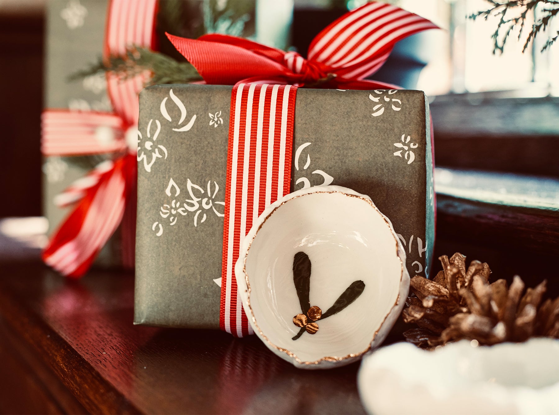 Handmade locally in a small studio in Notting Hill, this beautiful porcelain 'mistletoe' bowl, with delicate hand painted gold edging, adds that final special touch to your table and is a perfect gift for the festive season.