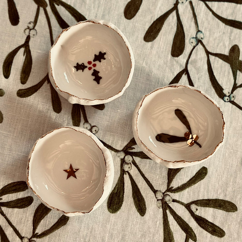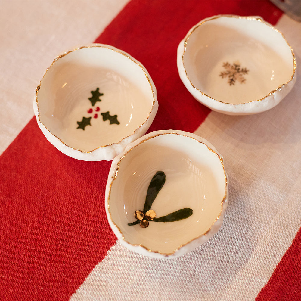 Handmade locally in a small studio in Notting Hill, this stunning porcelain 'jagged' bowl, with delicate hand-painted red stripes and gold edging, adds that final special touch to your table.