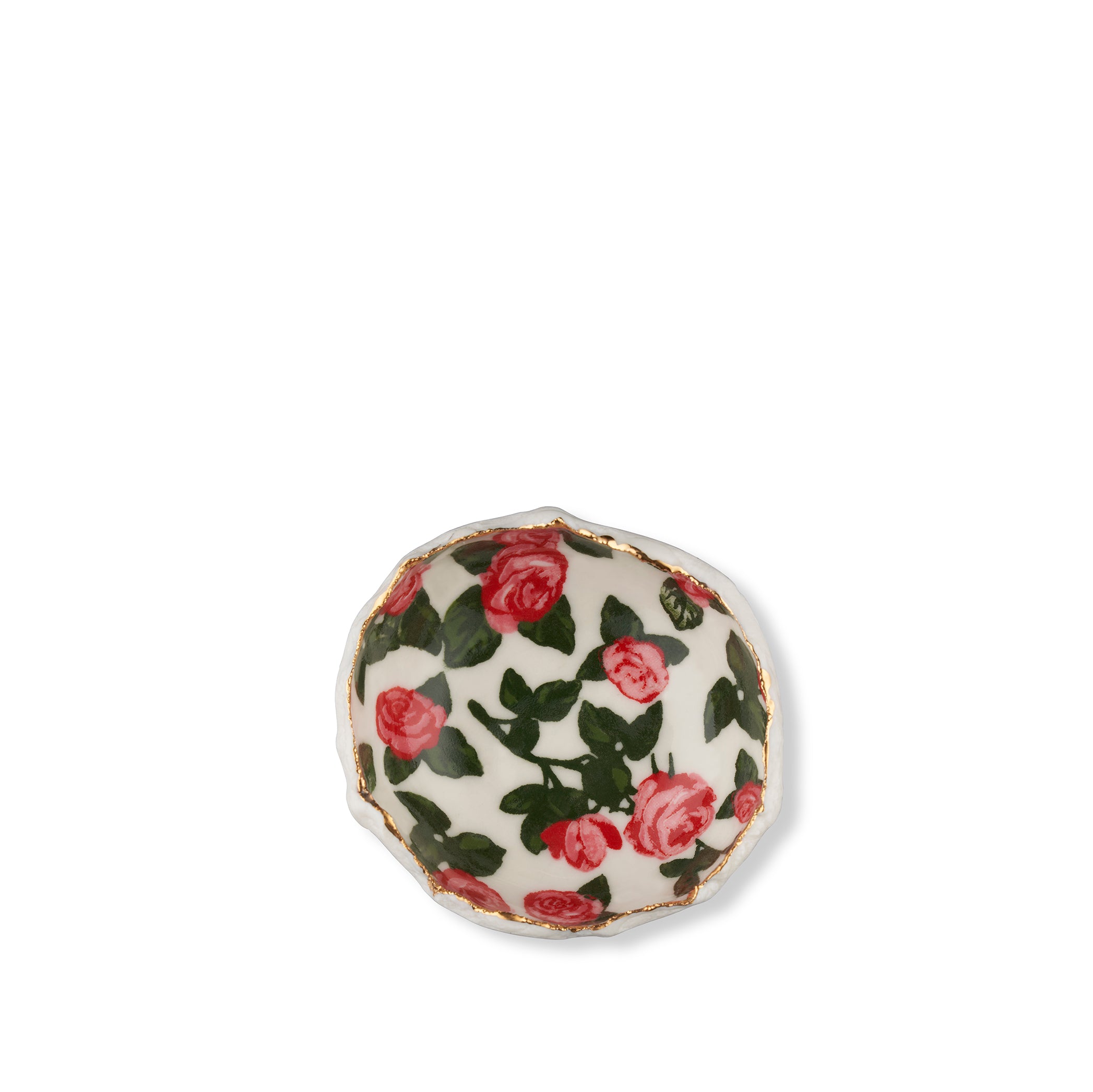 ... Read moreHandmade locally in a small studio in Notting Hill, this stunning porcelain 'jagged' bowl, with delicate hand painted roses and gold edging, adds that final special touch to your table.