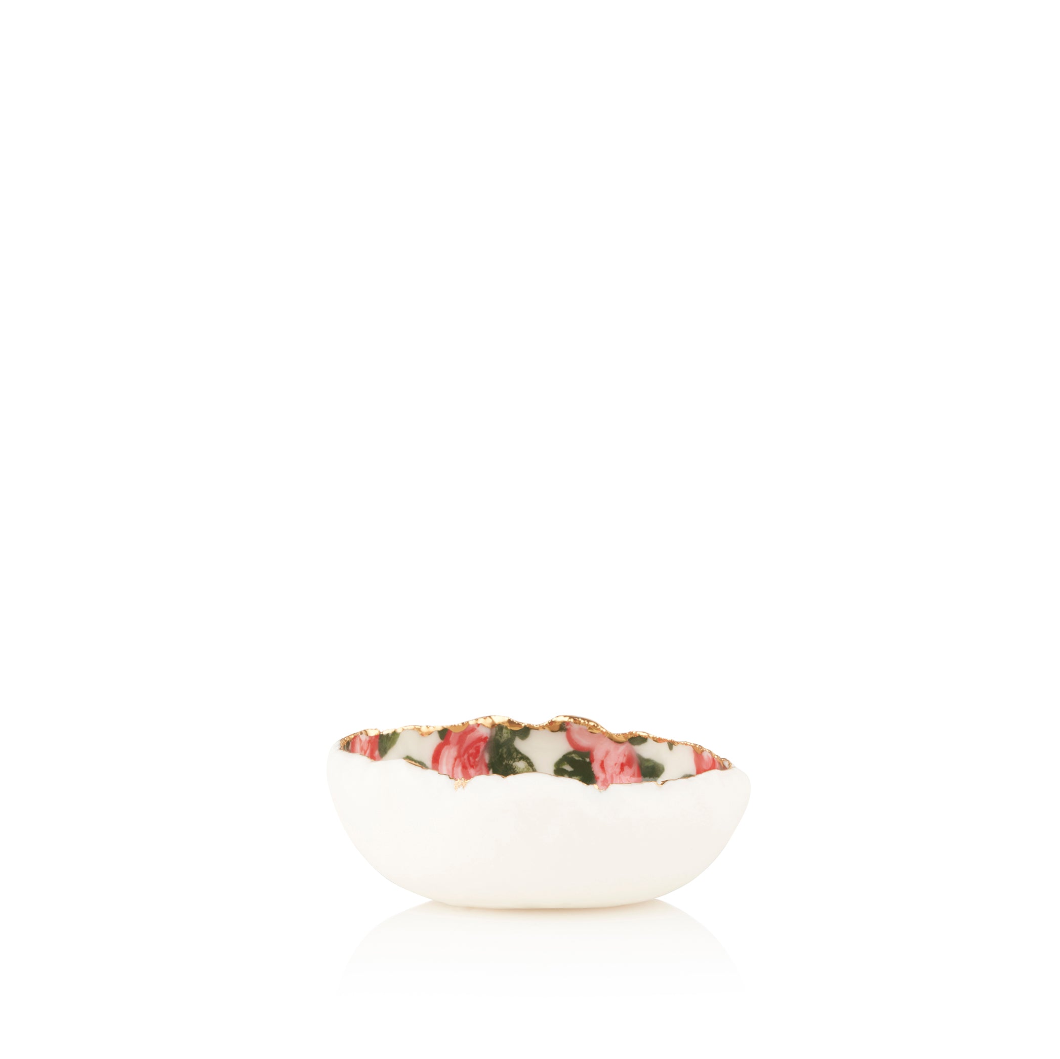 Handmade locally in a small studio in Notting Hill, this stunning porcelain 'jagged' bowl, with delicate hand painted roses and gold edging, adds that final special touch to your table.