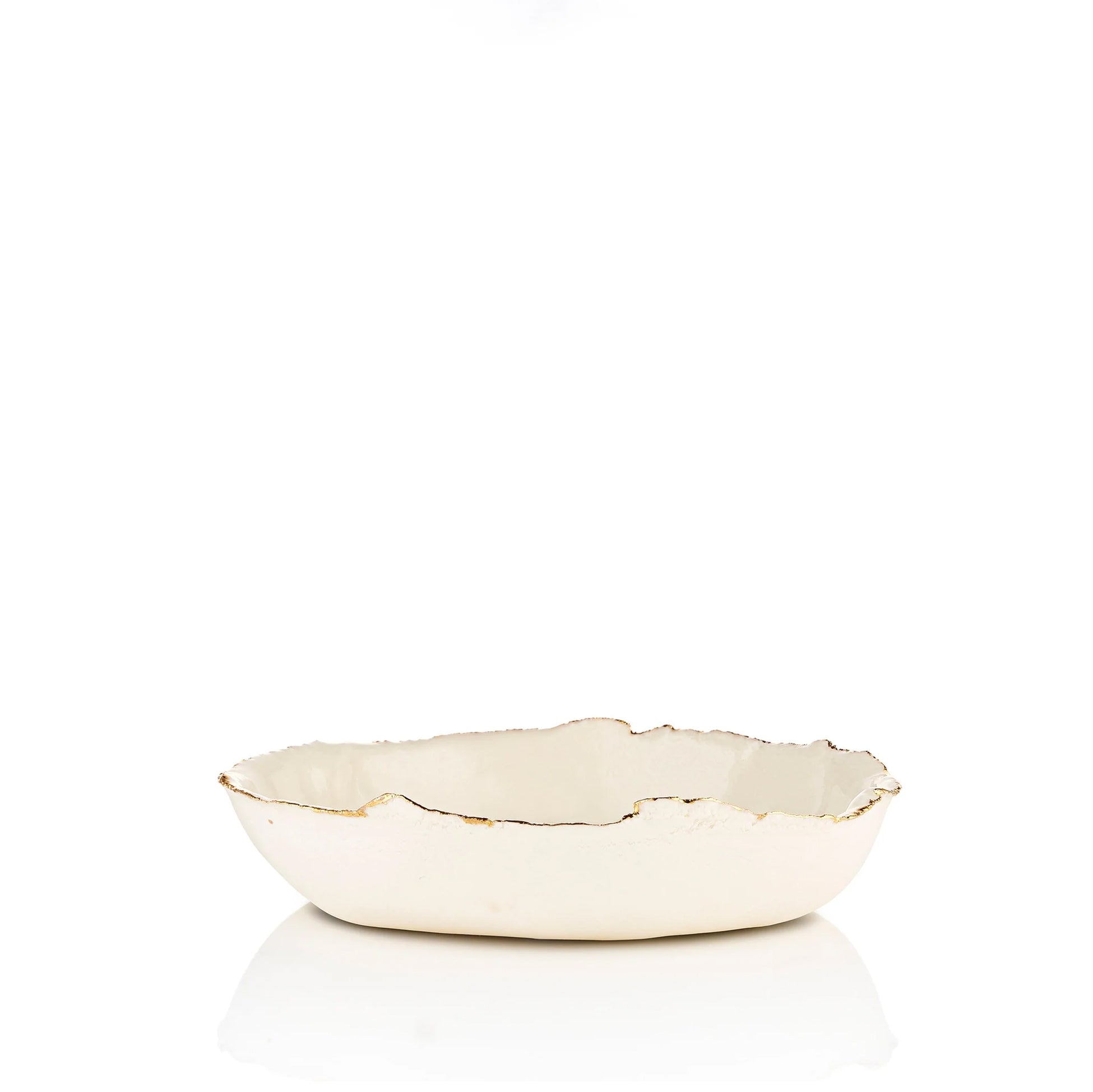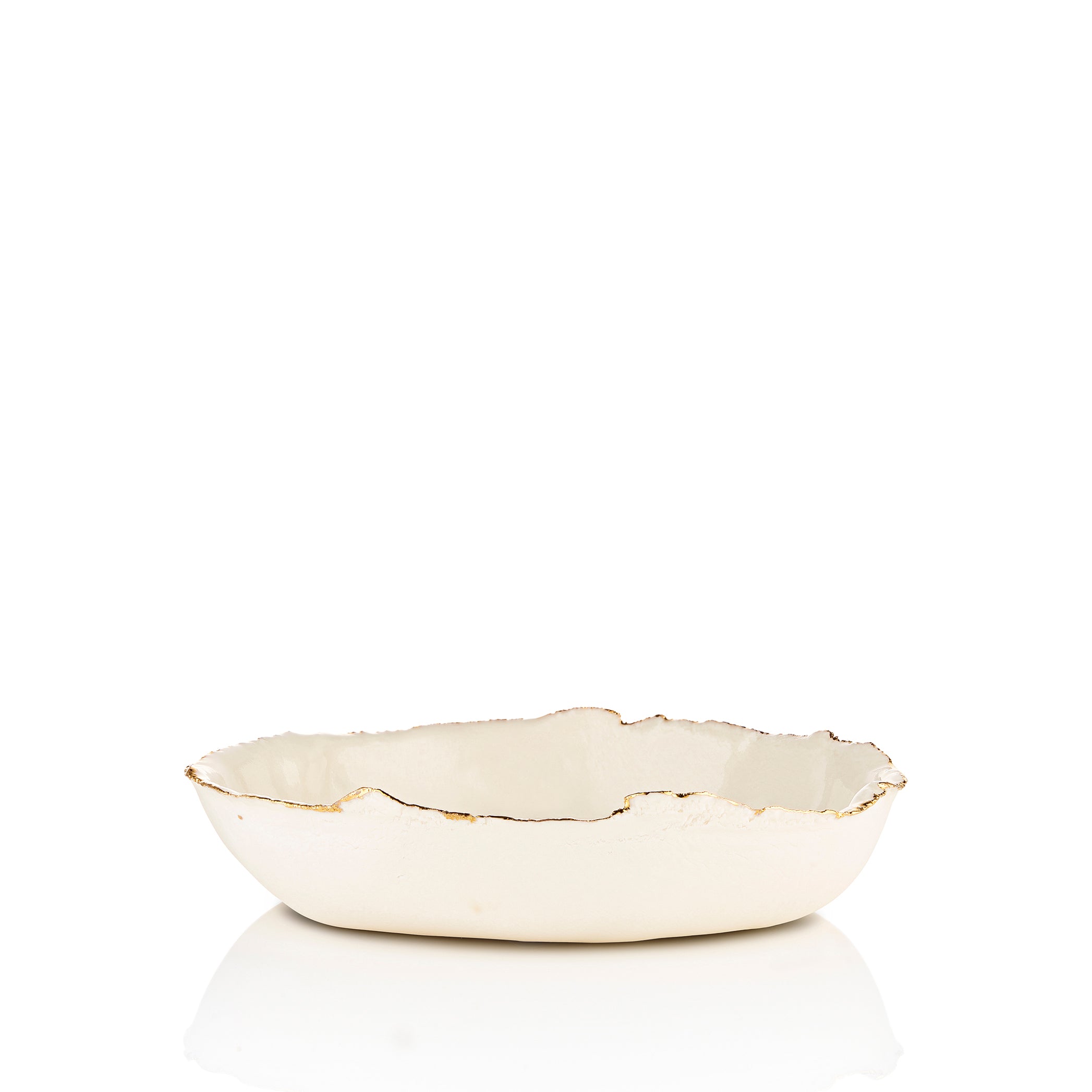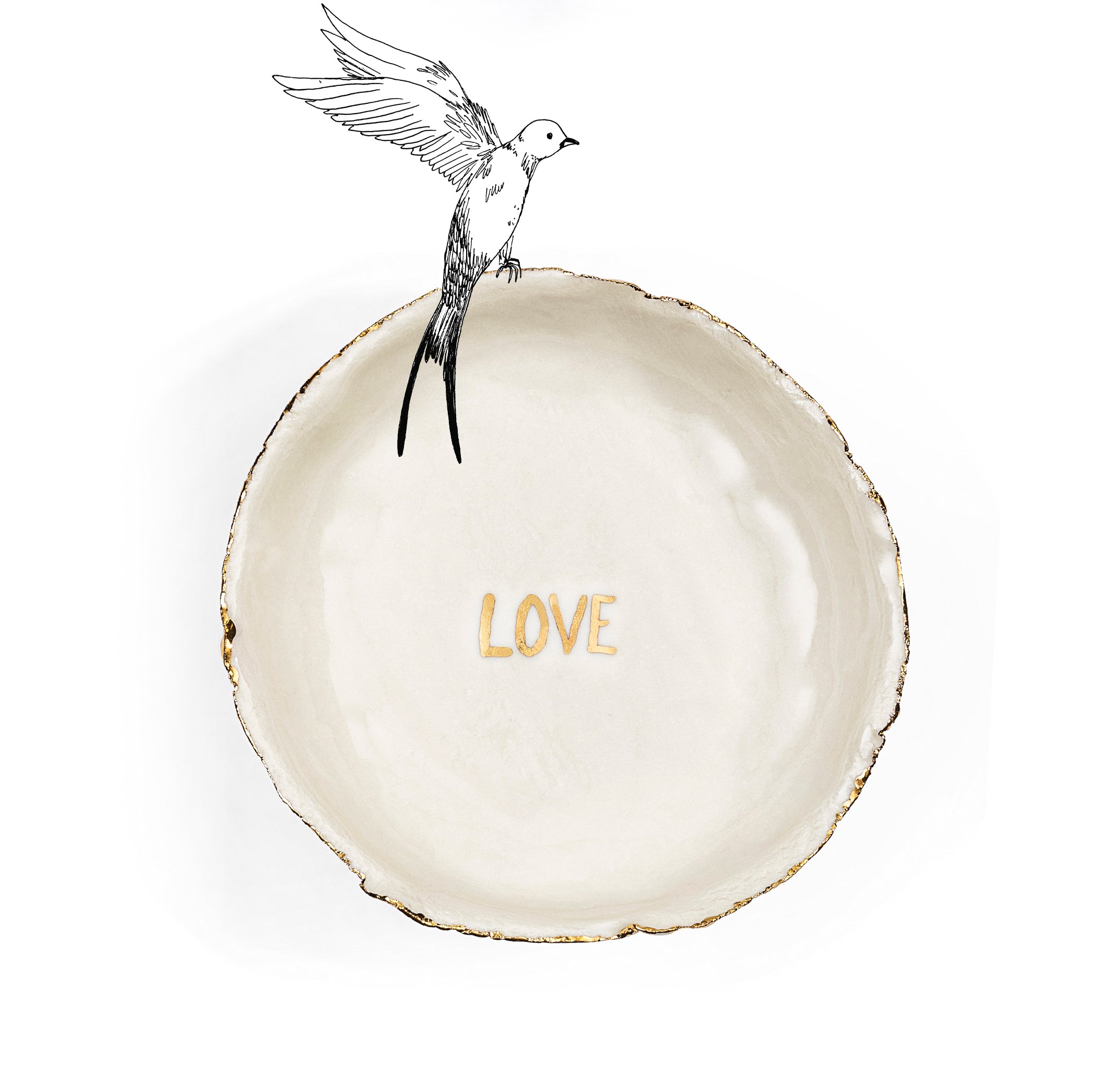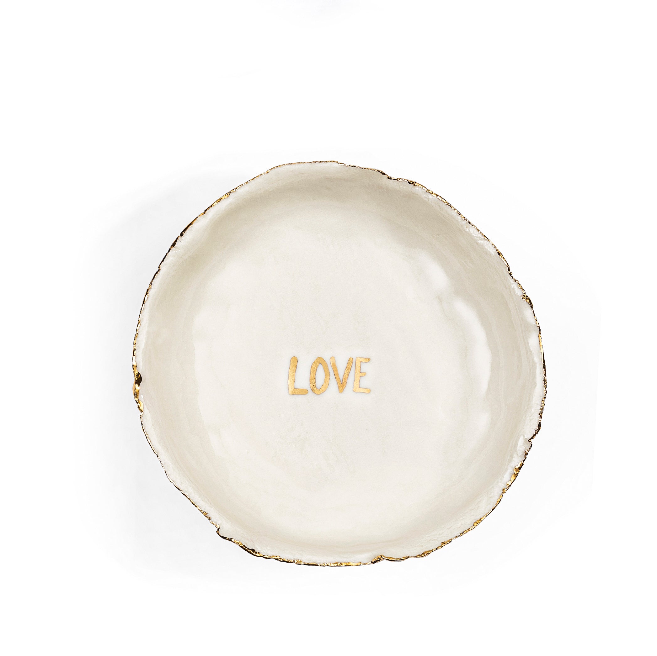 ... Read moreHandmade locally in a small studio in Notting Hill, this stunning porcelain 'LOVE' jagged bowl, with delicate hand painted gold edging, adds that final special touch to your table.