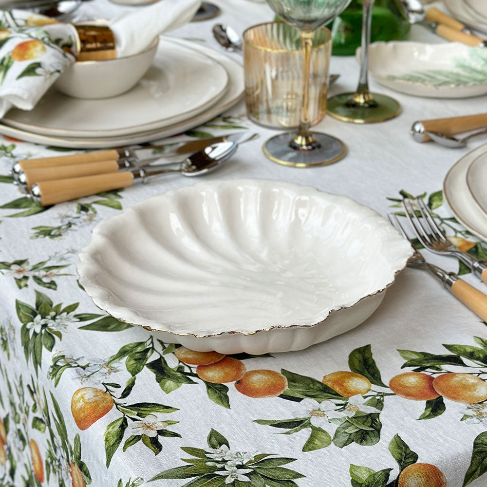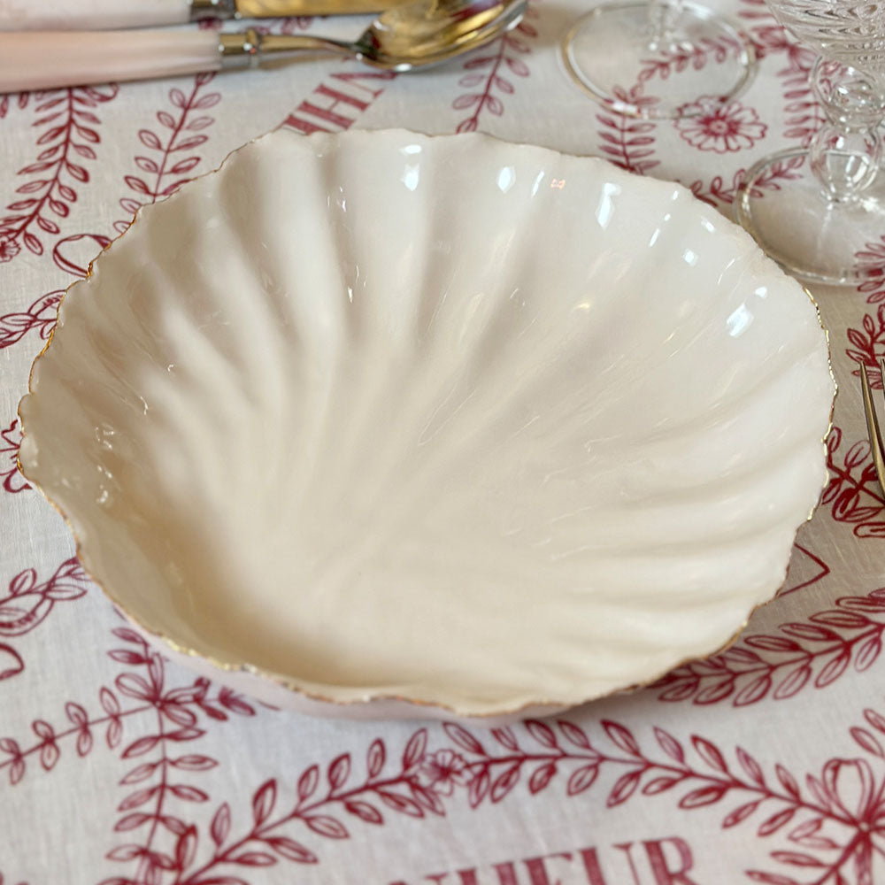 Inspired by the natural beauty of the sea, this 28cm serving bowl mimics the delicate curves of a shell. Its organic form and subtle gold accents bring a coastal charm to your table setting.