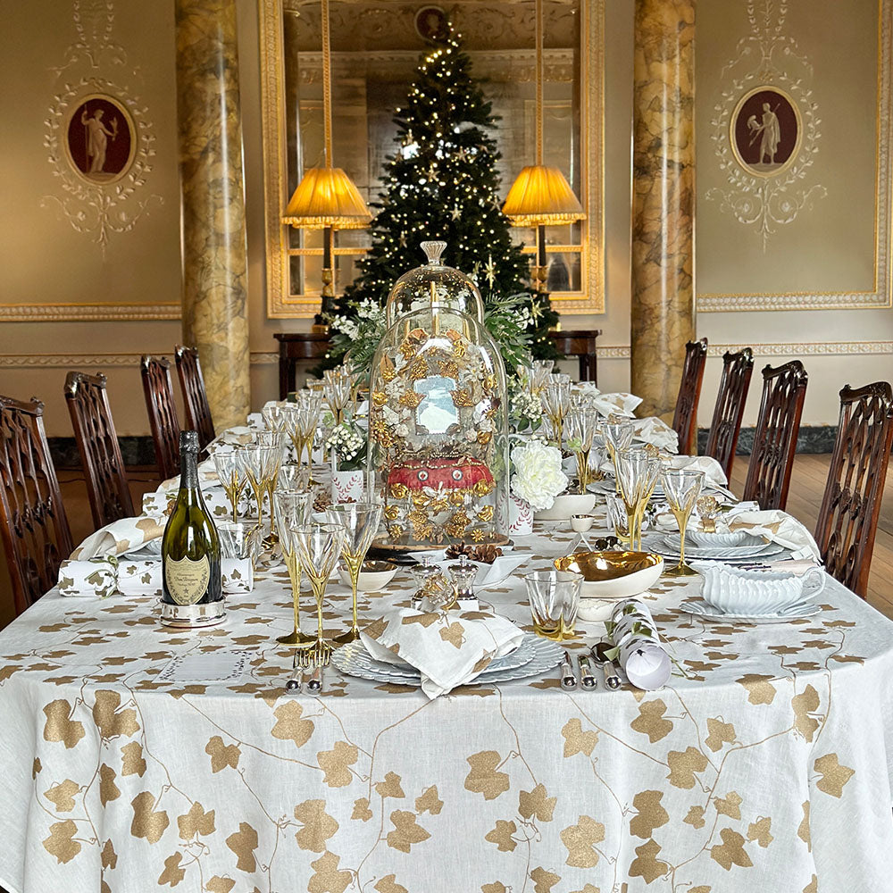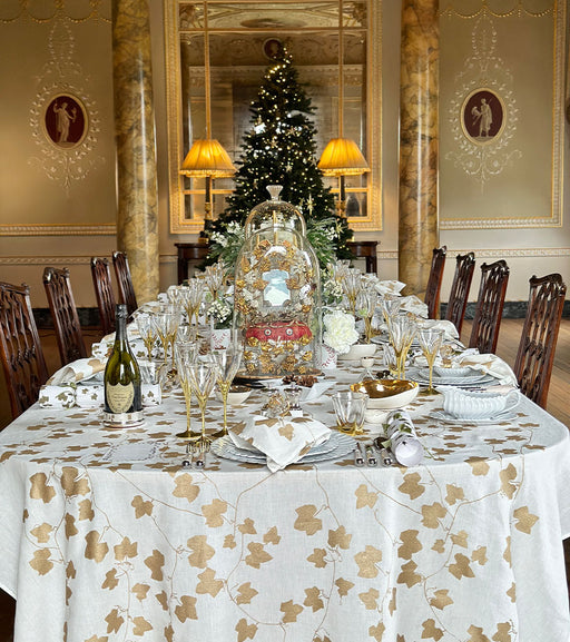 'Ivy' Screen Printed Linen Tablecloth in Gold