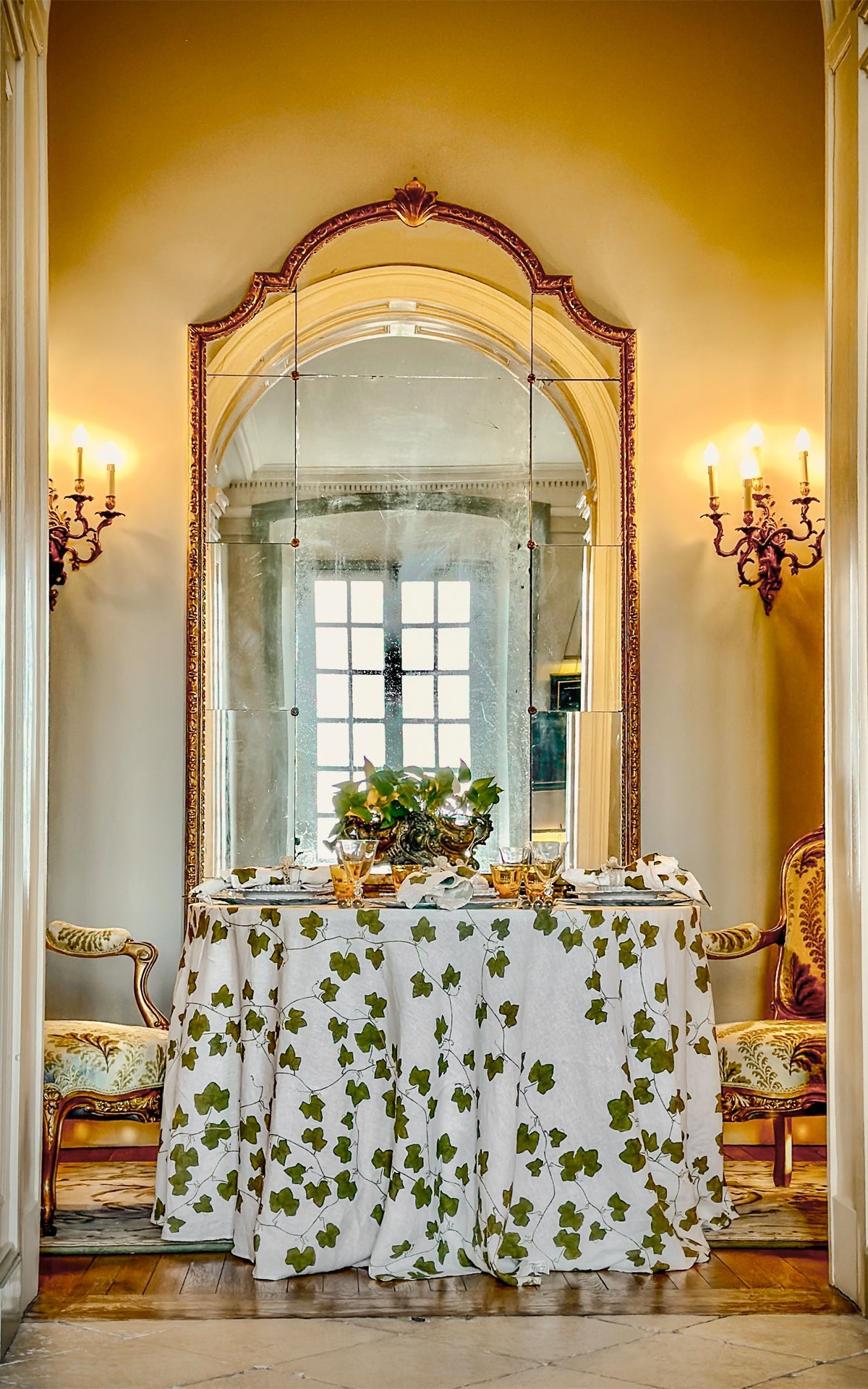 A timeless tribute to nature’s quiet elegance, Ivy’s delicate tendrils weave across pure French linen.