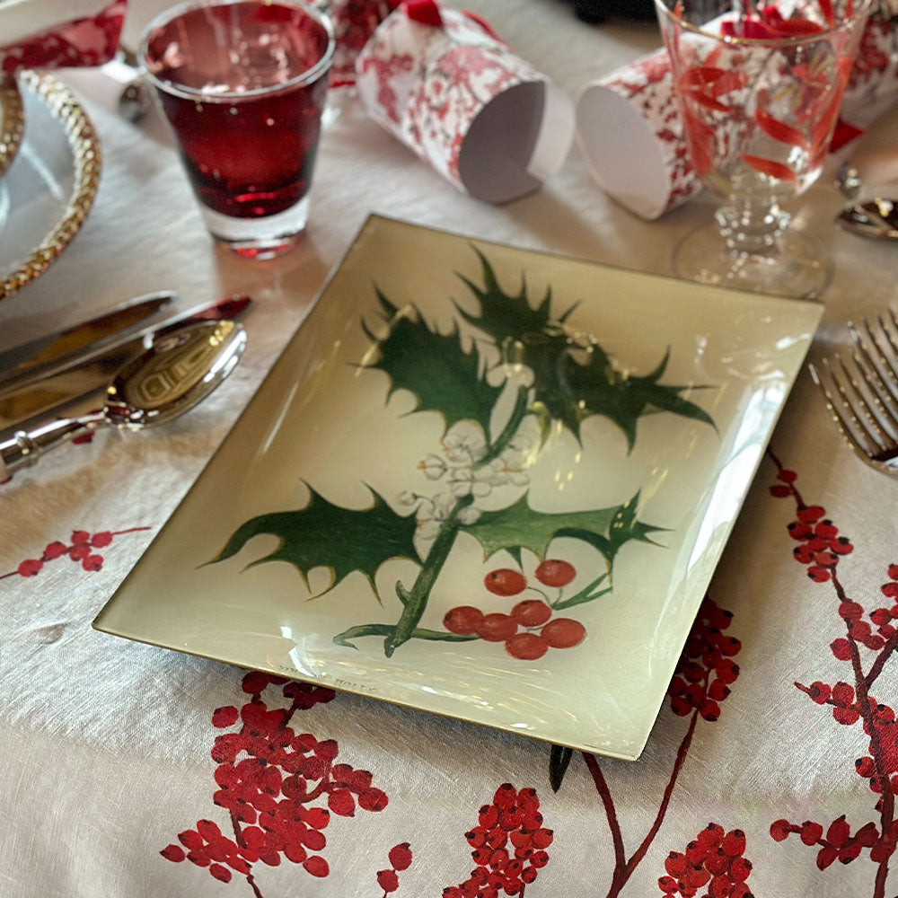 John Derian 'Common Holly' Rectangular Tray, 20 x 27cm