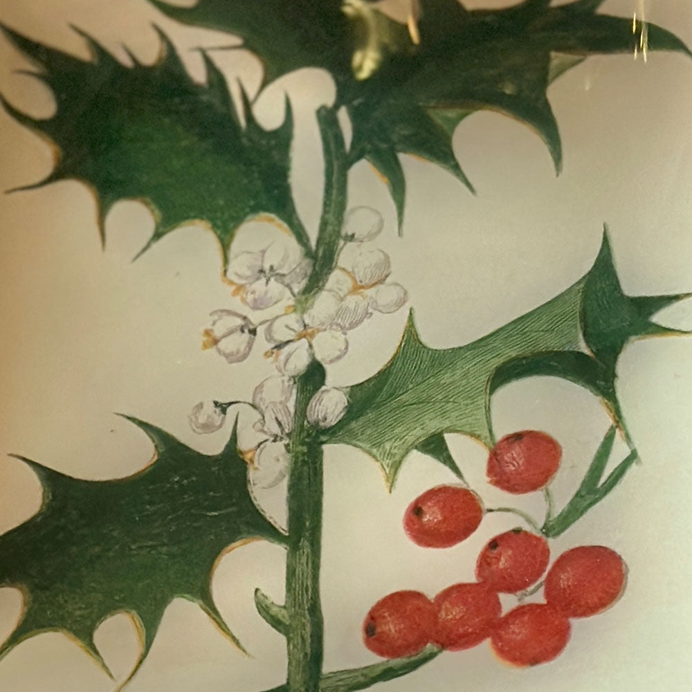 Glossy leaves and bright berries — winter’s classic, made to sparkle under glass. Ideal for festive candles or year-round greenery; archival imagery, handcrafted finish.