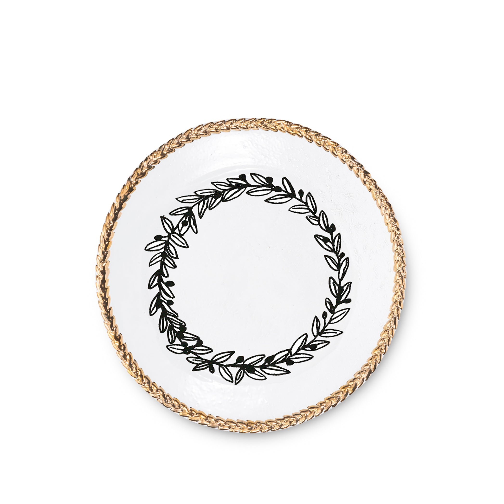 A simple gold rim makes this sophisticated white dinner plate all the more appealing.