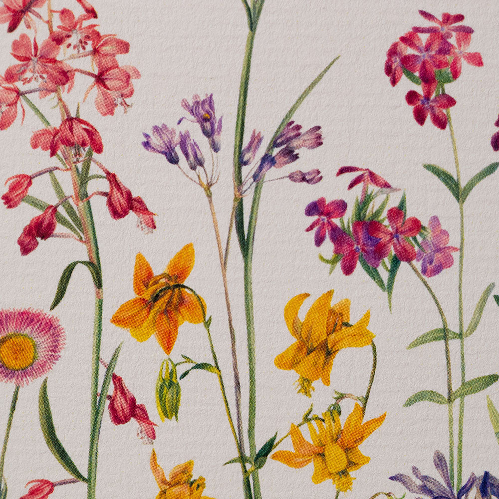 This design is our ode to the florals that bring to mind our beloved founder June: a meadow of vibrant florals unfurling across the canvas.