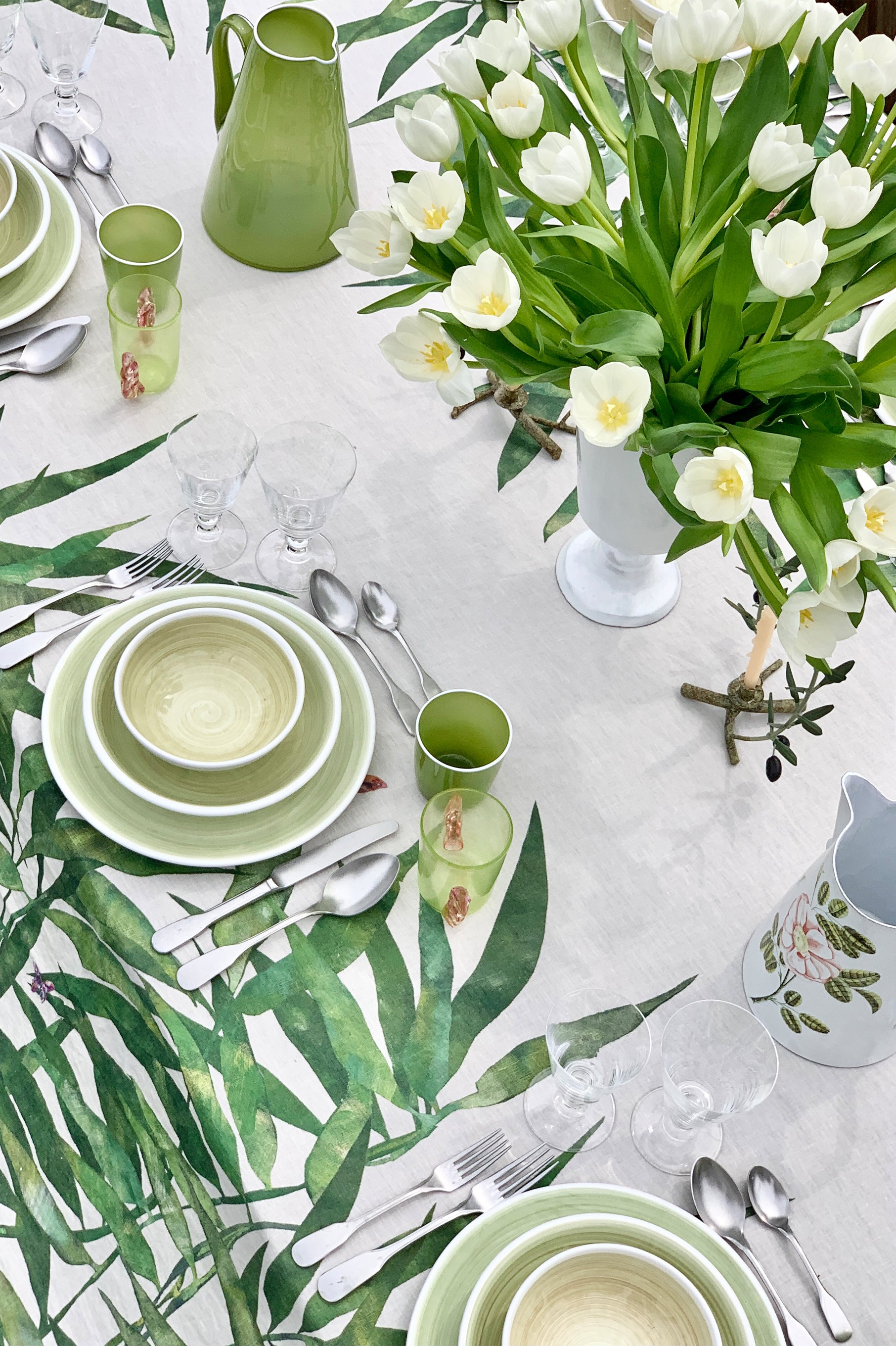 'Les Palmiers' Linen Tablecloth in Green