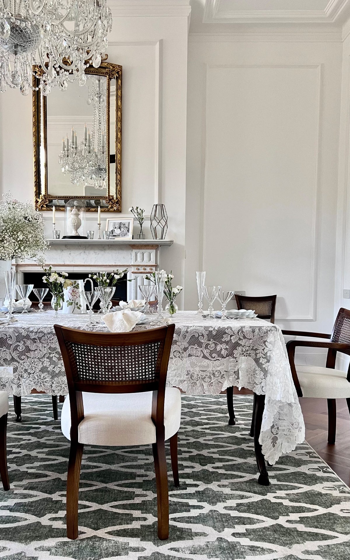 This fine lace tablecloth is soft to the touch and exquisite to the eye. Created in France on one of the last remaining 'Lyon' lace looms, normally the reserve of couture fashion houses and luxury lingerie designers. Each lace tablecloth is woven individually on decades old looms, each piece is then corded and finished by hand, making no two exactly the same.
