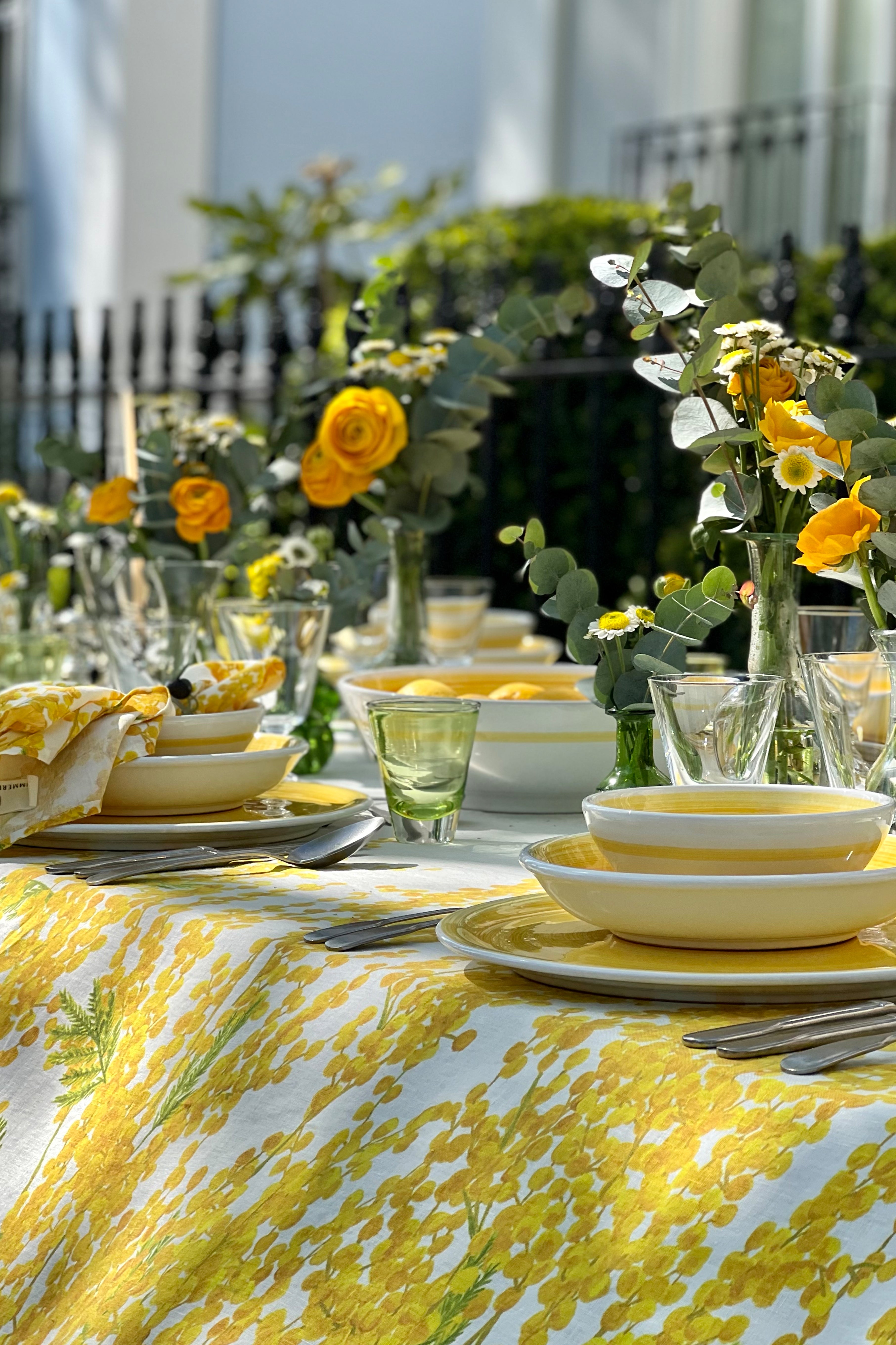 Let your table flourish with a thousand dainty suns in a riot of sunshine yellow. The blossoming Mimosa signals the dawn of spring and summer ahead and lighter, longer days.