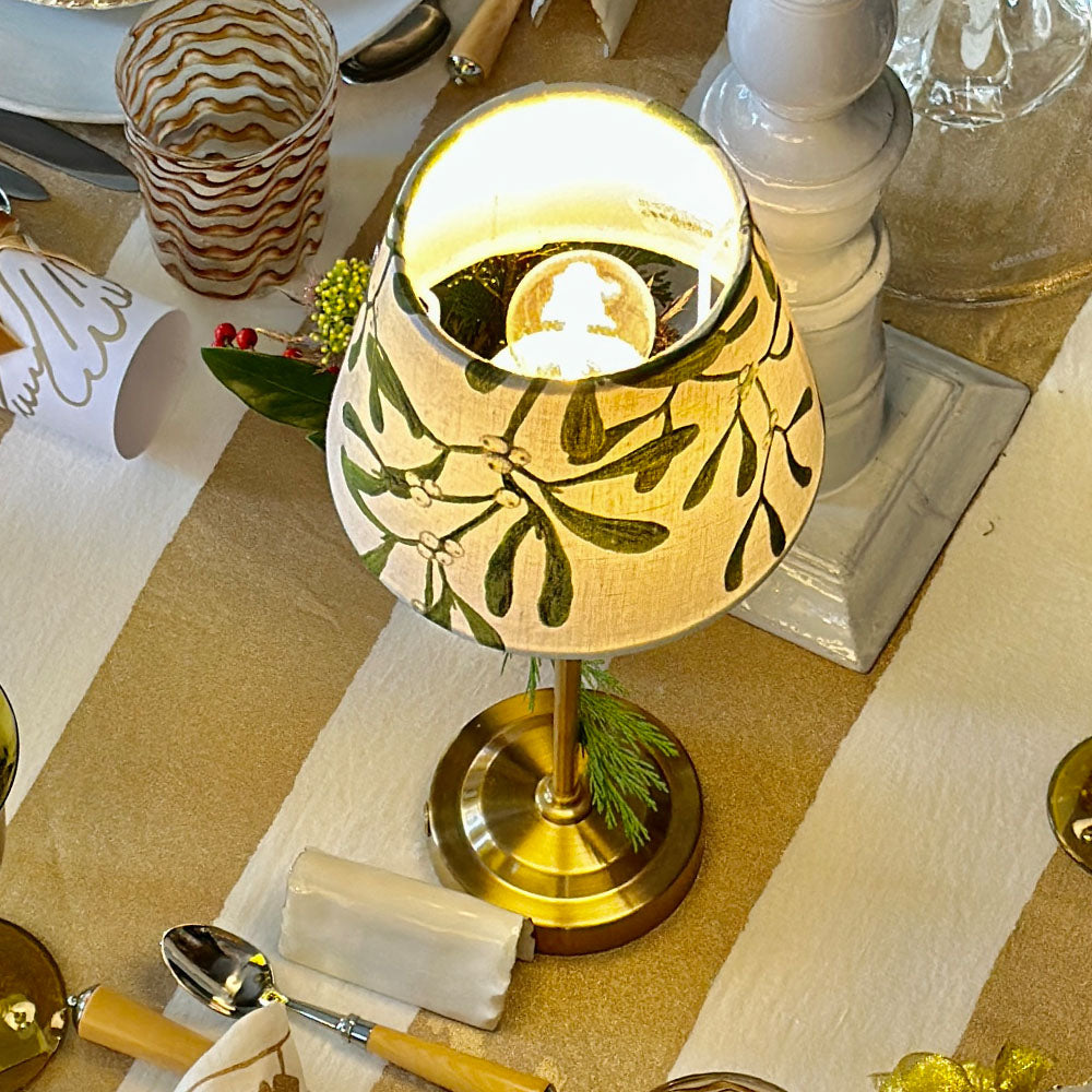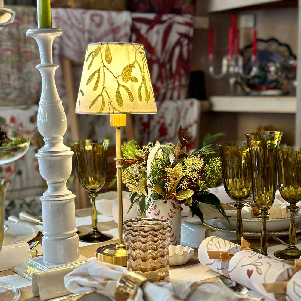 The 'Mistletoe' Linen Lampshade is crafted from 100% pure French linen, lovingly revived and expertly made in Scotland. Designed to bring a touch of elegance and functionality to any space, it pairs perfectly with the S&B Lamp Base in Gold, offering adjustable lighting to suit your mood—from soft ambient glows to brighter, focused illumination.