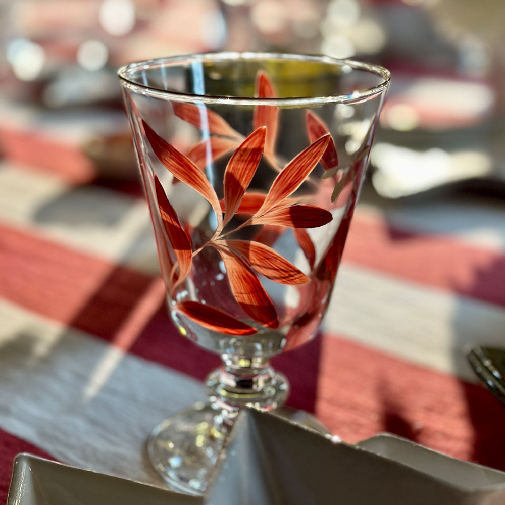 Olive Leaf Burgundy & Gold Dragonfly Wine Glass