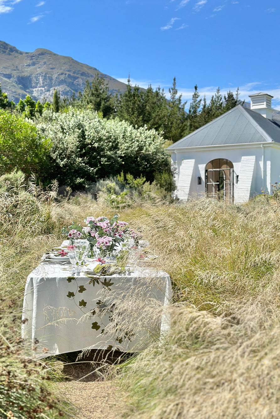 This 100% pure French linen tablecloth is perfect for elevating your table setting and is effortless and elegant with aplomb. Perfect for those who prefer subtle botanical accents and slight colour.