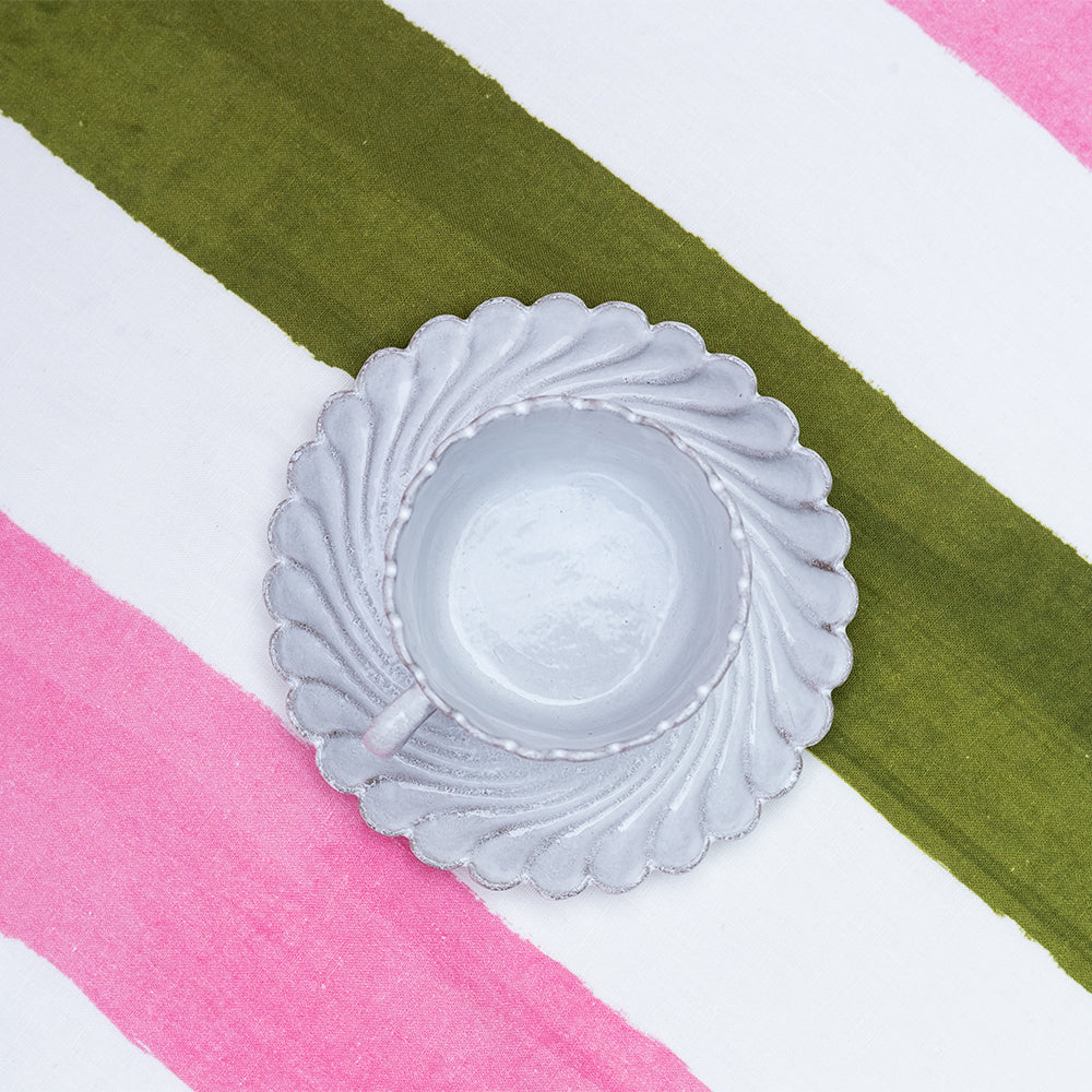 A refined ceramic teacup with soft scalloped edges, perfect for moments of quiet indulgence. Designed for those who appreciate the beauty of handmade ceramics.