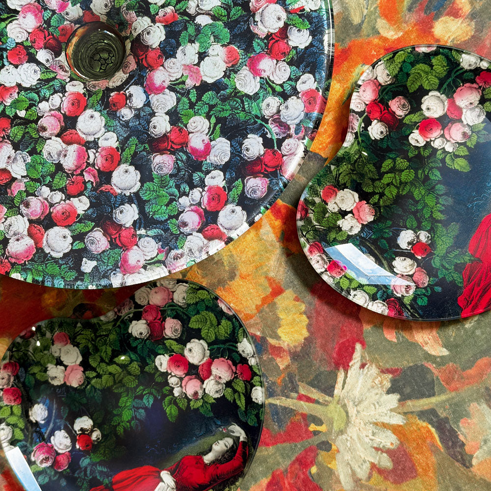 Please Note: each decoupage glass piece is handcrafted in John Derian’s studio using archival imagery and sealed for everyday display; wipe clean with a soft, damp cloth.