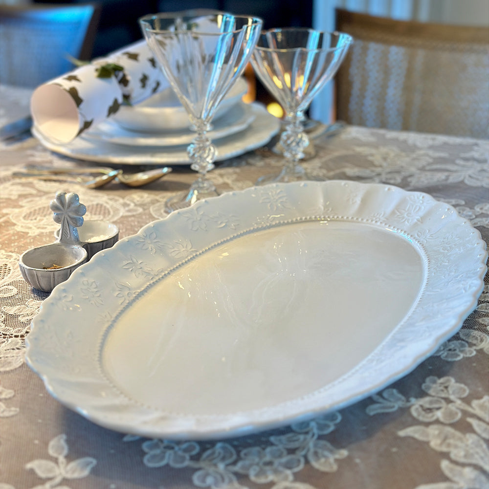 Bernadette's Falling Flower White Oval Platter, 46cm