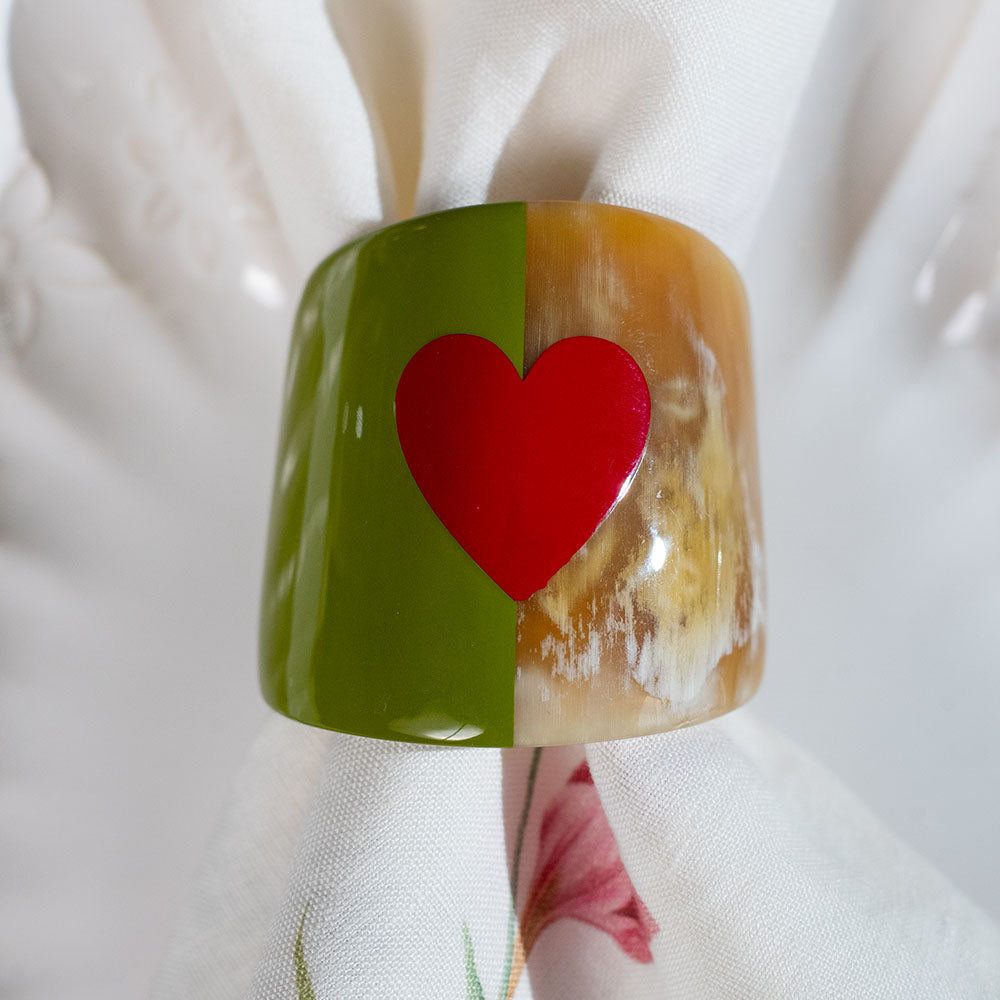 S&B Heart Green Lacquer & Horn Napkin Ring
