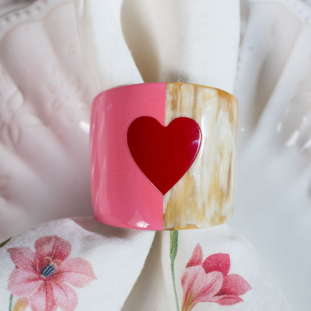 S&B Heart Pink Lacquer & Horn Napkin Ring