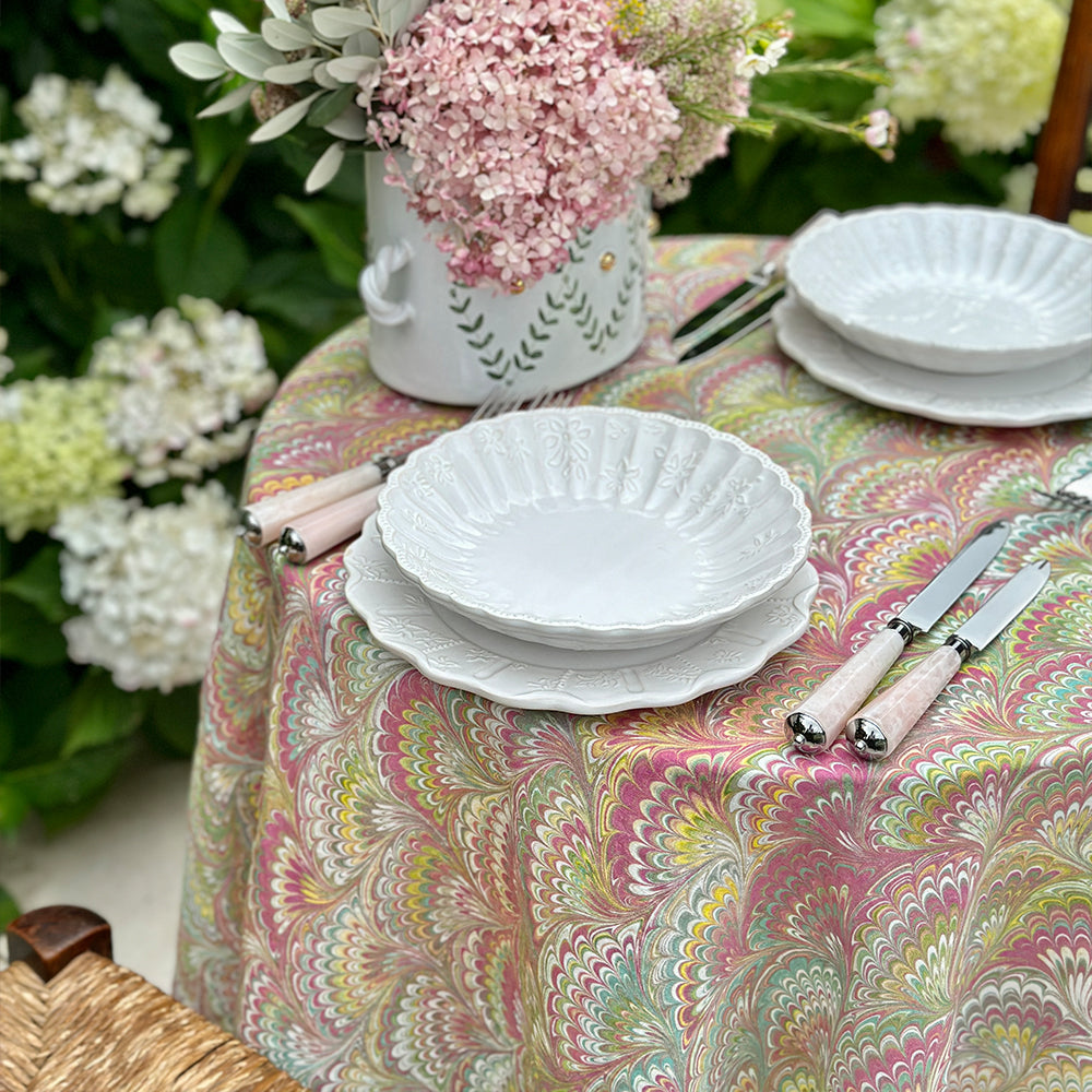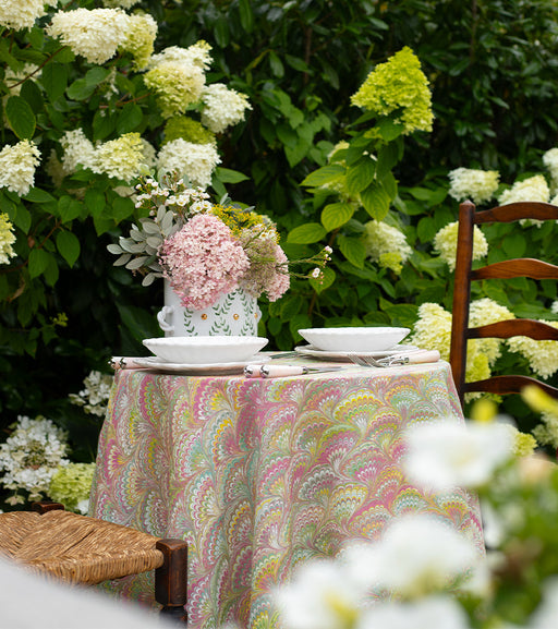 S&B 'Marble Fan' Round Occasional Linen Tablecloth, 165cm