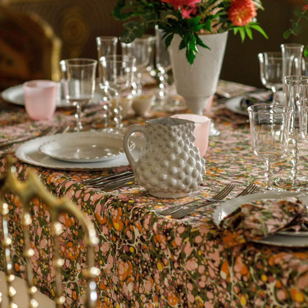 Summerill & Bishop 'Marble' Linen Napkin in Green, Rose Pink & Orange, 50x50cm