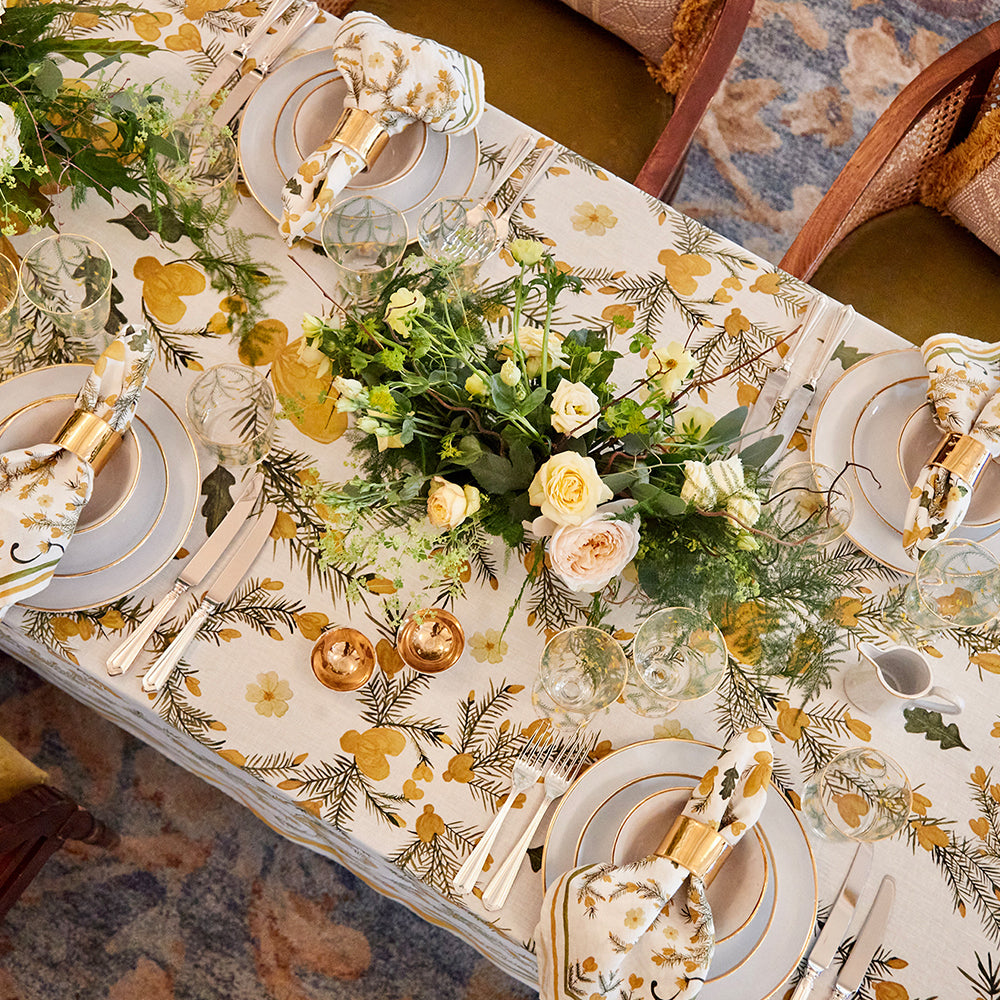 The Summerill & Bishop x Gleneagles Table Linen Collection comprises a beautiful tablecloth, available in three sizes and a matching napkin, both made from 100% pure French linens.