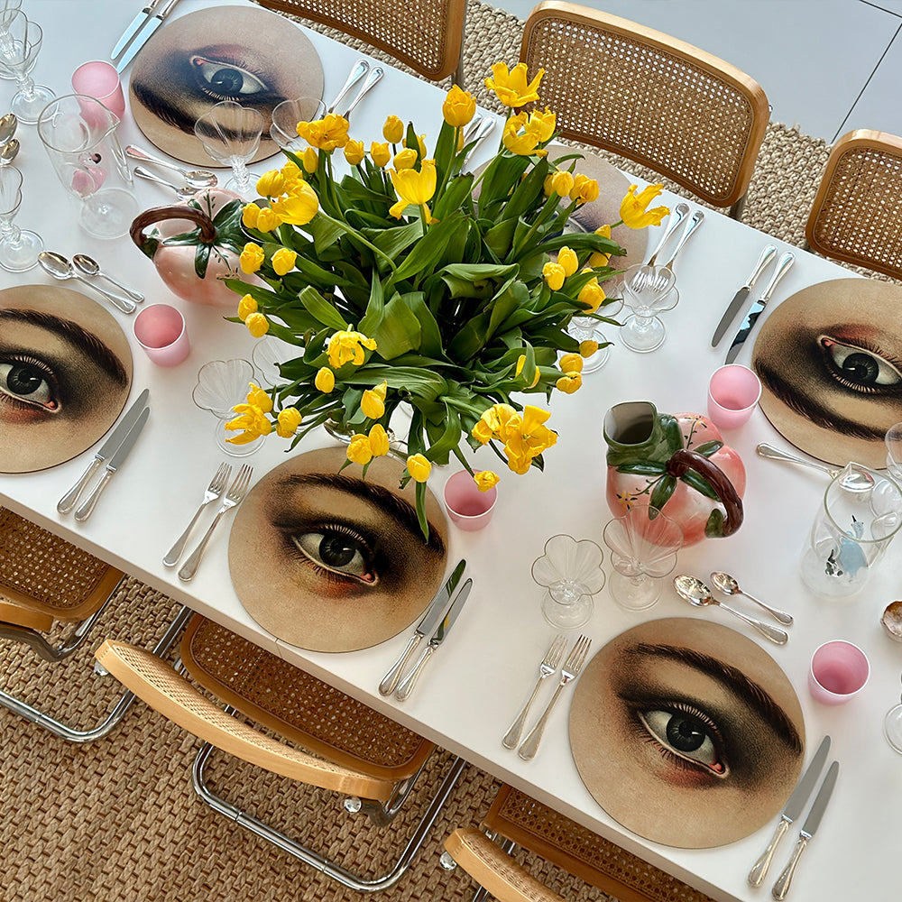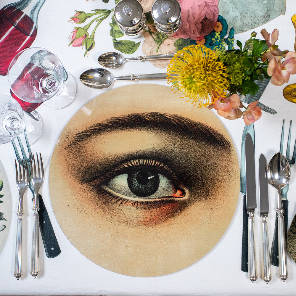 The 'Eye' Round Placemat brings an element of bold storytelling to the table. Featuring John Derian’s signature 18th and 19th century aesthetic, this eye-catching design sparks conversation while adding a sophisticated touch to any setting.
