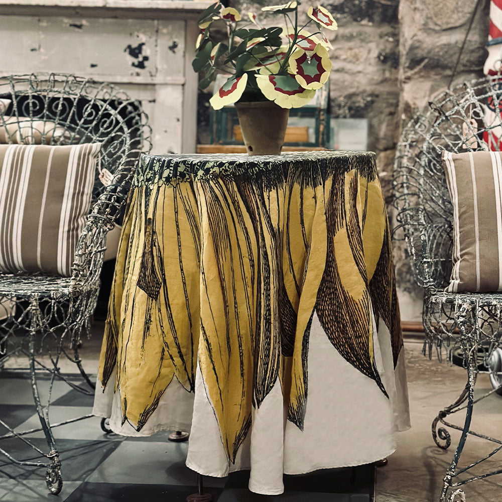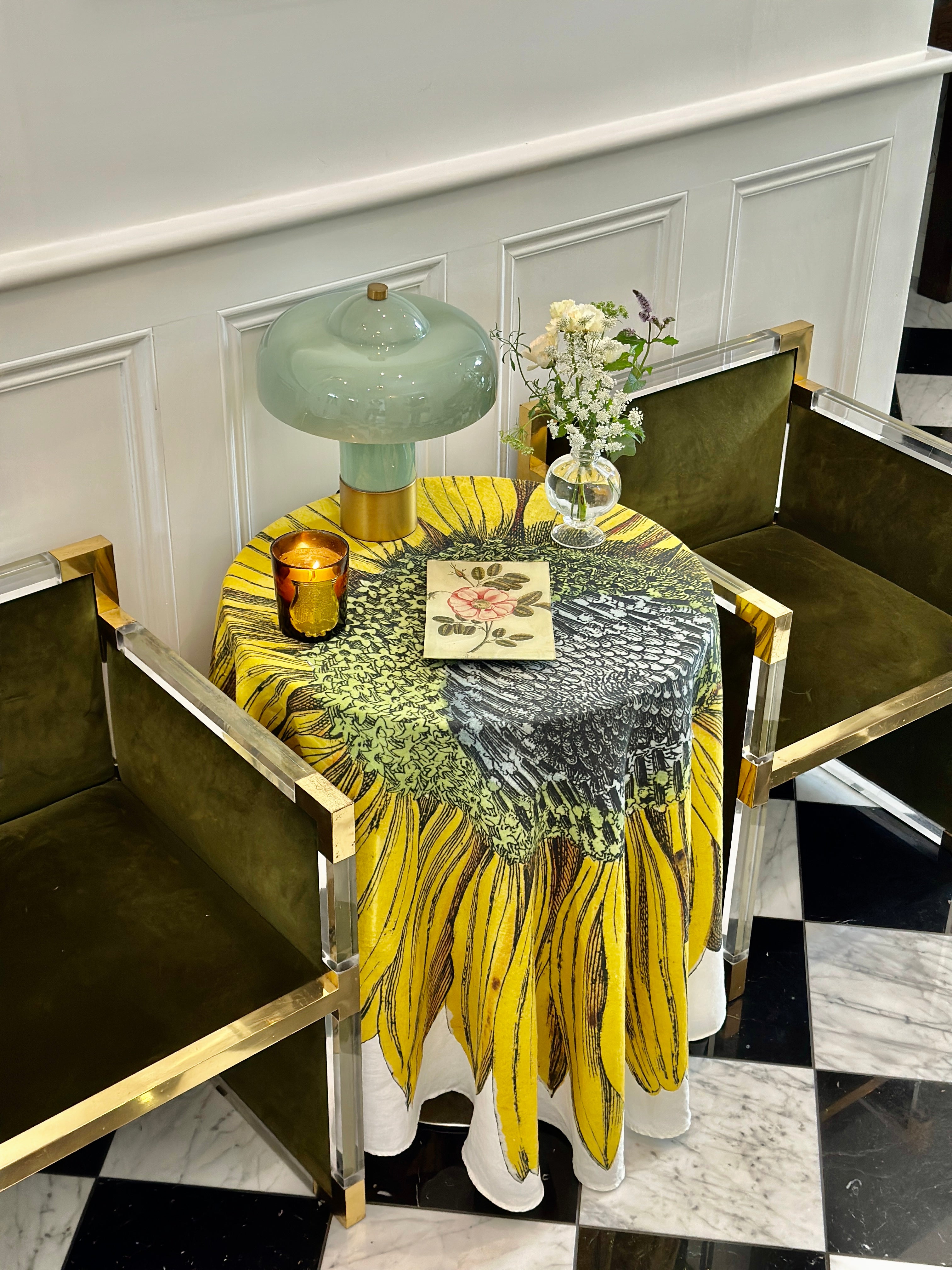 Bold, bright and joyfully botanical, the 'Sunflower' Linen Round Occasional Tablecloth brings a sun-drenched feel to smaller tables and alfresco settings. Chosen from John Derian’s archive of antique prints, this design radiates warmth and vintage charm.