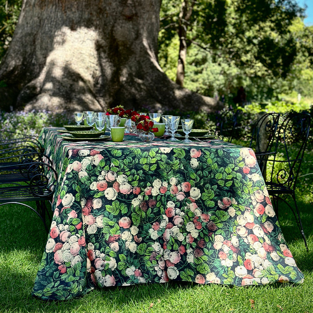 Where enchantment meets the everyday. The Sleeping Beauty tablecloth, from the continuing collaboration between Summerill & Bishop and John Derian, evokes the stillness and beauty of a secret garden in bloom.
