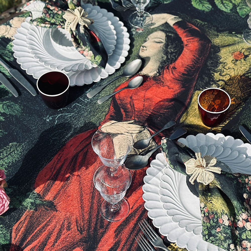 Featuring Derian’s romantic imagery printed on 100% pure linen, this design transforms every meal into a moment of story and splendour.