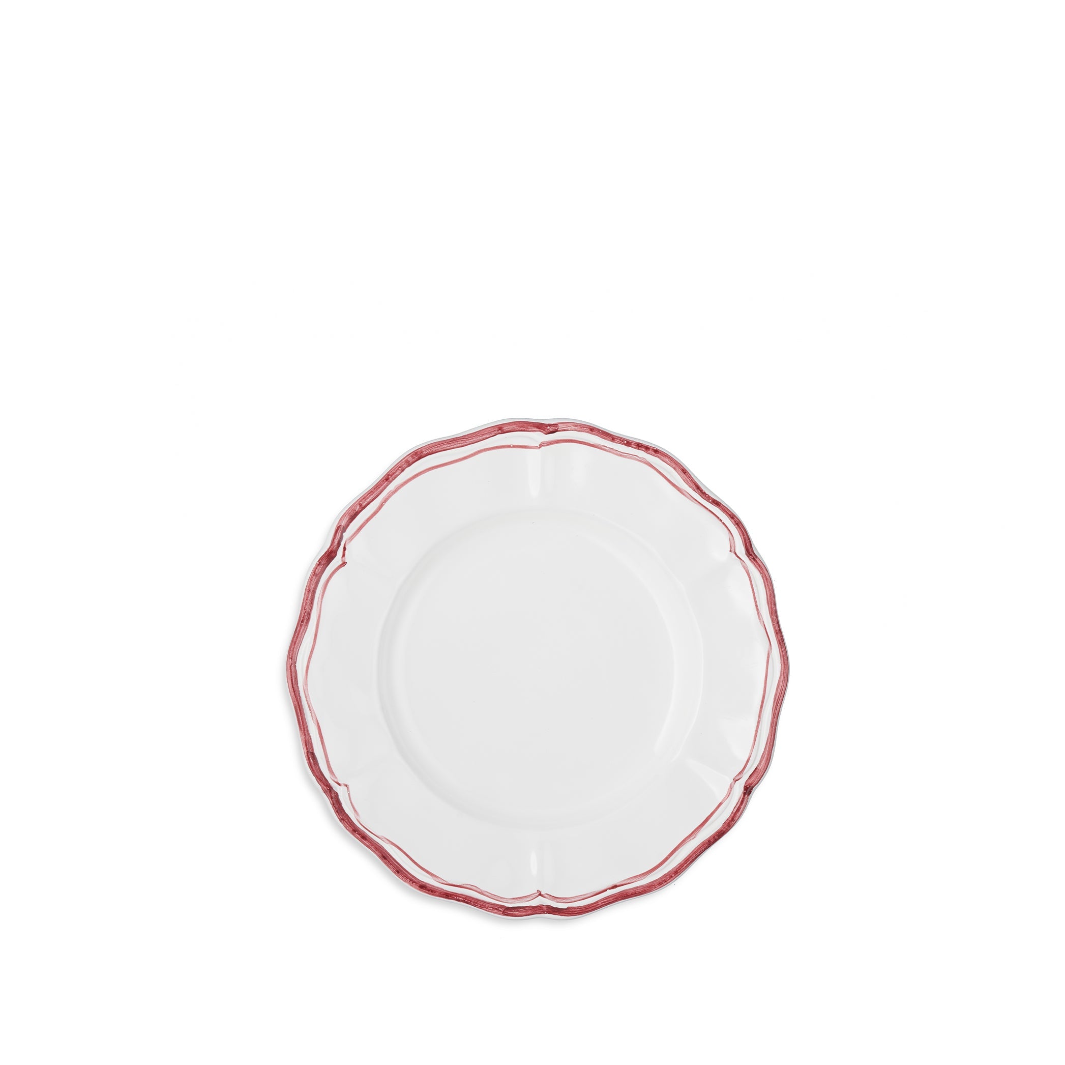 Handmade and hand painted in Italy, this white and claret red ceramic dinner plate looks stunning on the dining table.