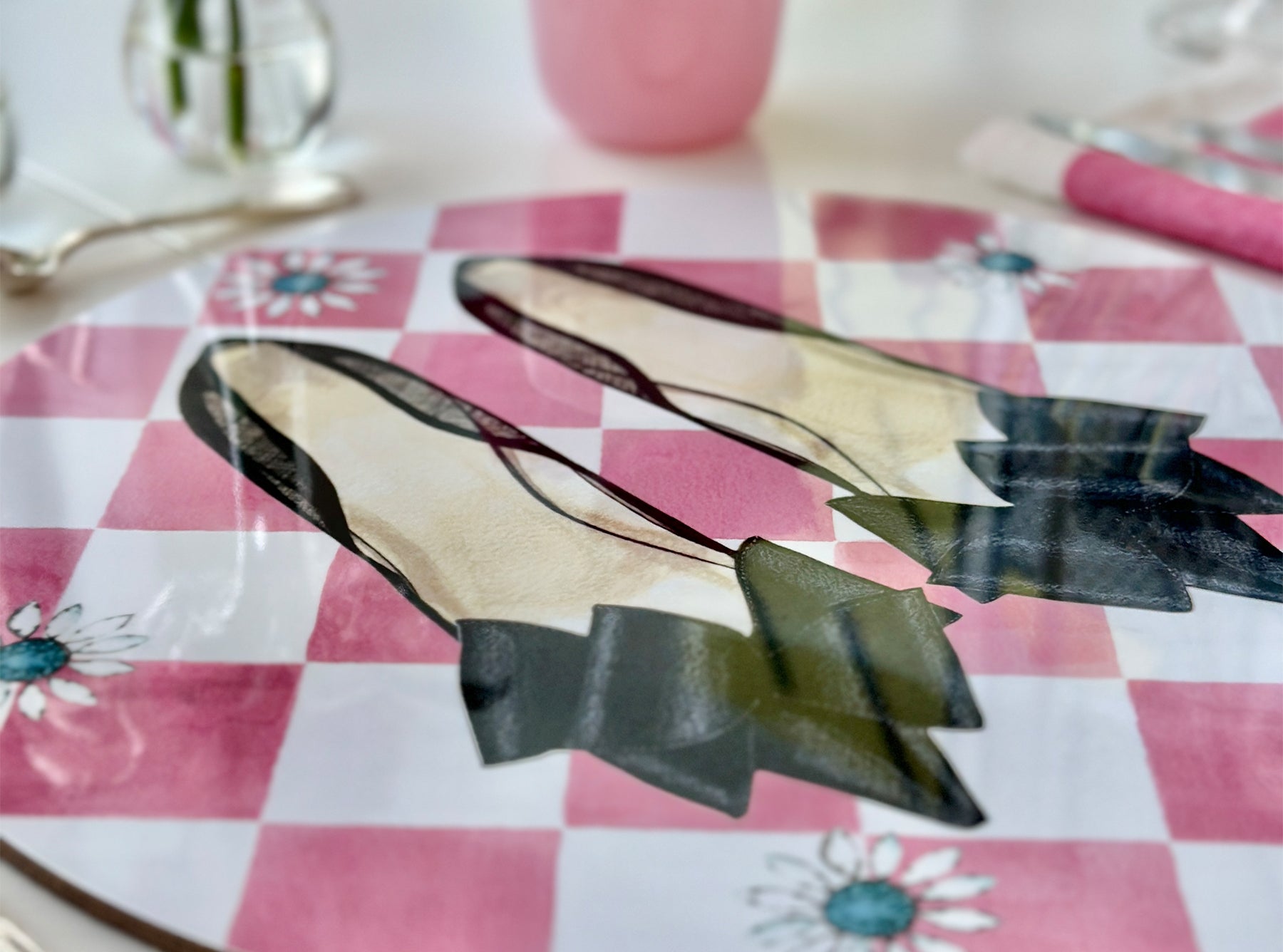 Expertly crafted in England and manufactured with a sustainably sourced Eucalyptus base, this shoe placemat collection also features a wipeable high gloss melamine finish, for a fuss-free and stylish place setting.
