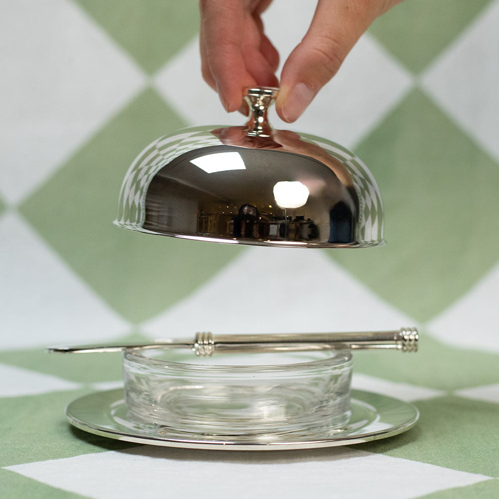 Refined and practical, the silver-plated butter dish and knife bring a touch of elegance to the simplest of rituals. Designed to keep butter perfectly presented, it elevates both breakfast tables and dinner parties alike.