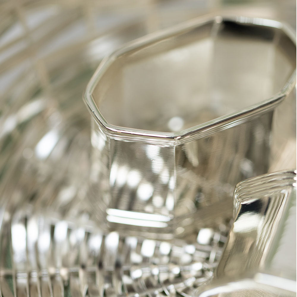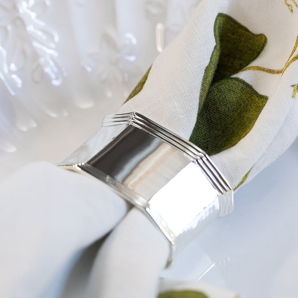 Elegant in form and finish, these octagonal silver-plated napkin rings lend structure and polish to every place setting. A timeless essential for both everyday dining and formal occasions.