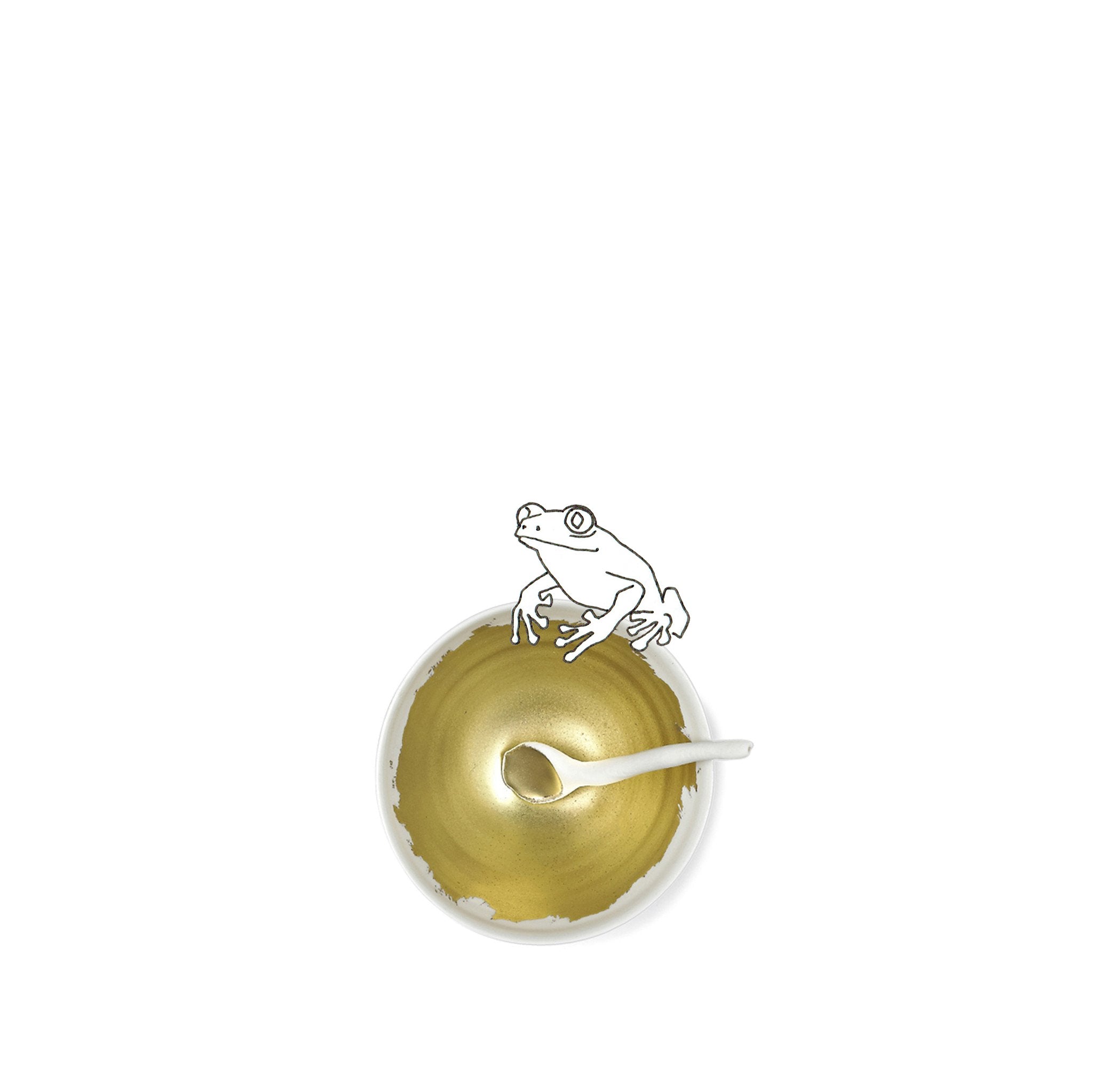 Small Porcelain Bowl with a Matte Gold Interior and Spoon, 6cm