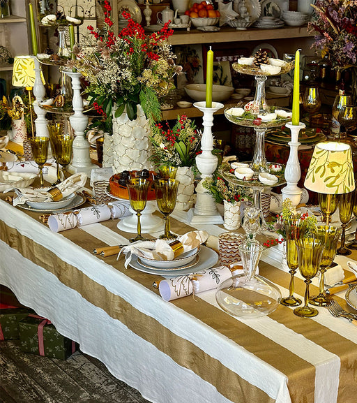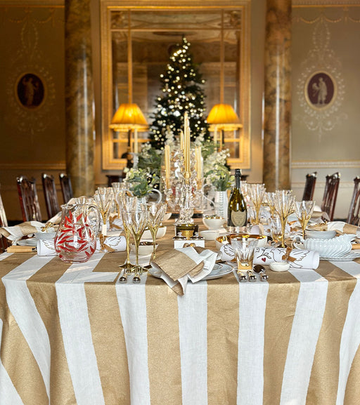 'Stripe' Screen Printed Linen Tablecloth in Gold