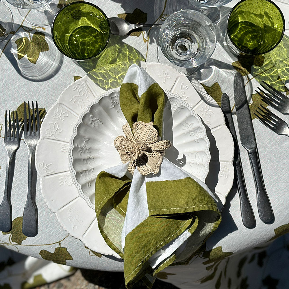 'Stripe' Linen Napkin in White & Avocado Green, 50x50cm