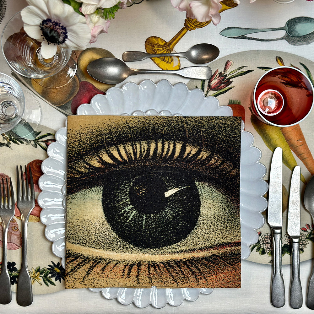 A symbol of curiosity, wisdom, and protection, the 'Eye' Linen Napkin brings a striking focal point to your table.