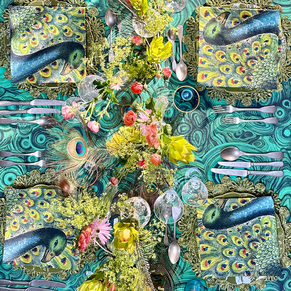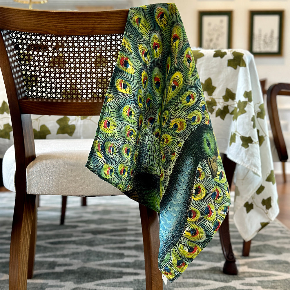 Vibrant and full of personality, the 'Peacock' Linen Napkin captures the bird’s striking beauty in exquisite detail.