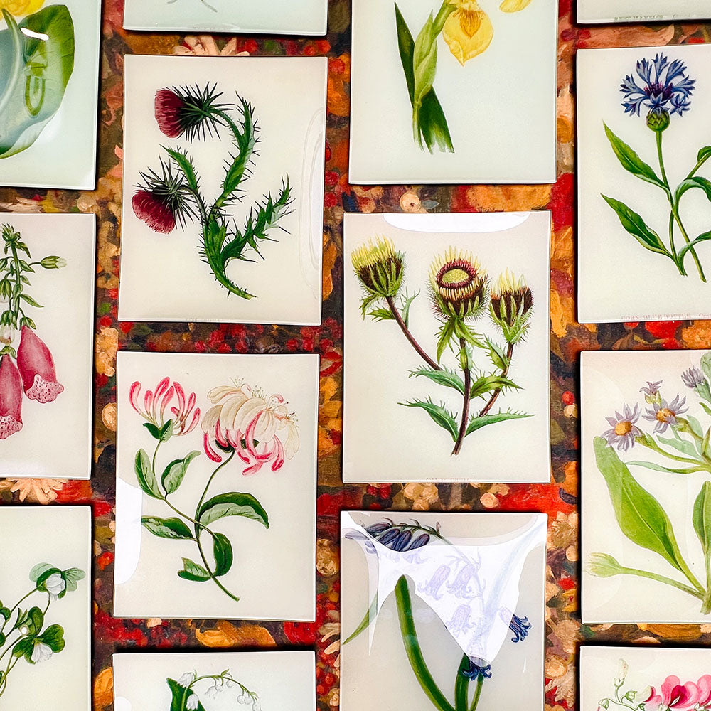 Please Note: each decoupage glass piece is handcrafted in John Derian’s studio using archival imagery and sealed for everyday display; wipe clean with a soft, damp cloth.