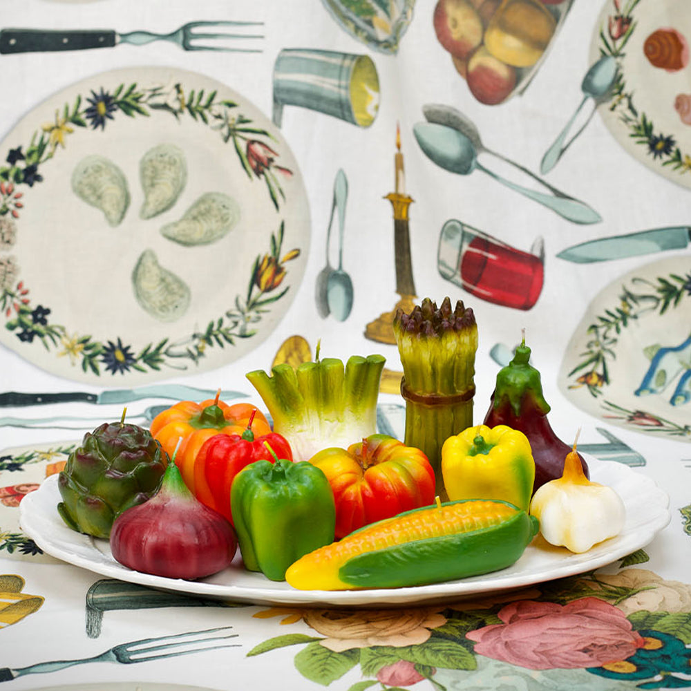 Bring a touch of farm-fresh charm to your space with our Vegetable Basket Candle. Perfect for adding a rustic, natural vibe to any room, this candle is more than just a light source, it’s a miniature work of art. The intricately detailed trompe l'oeil design features a delightful mix of vibrant vegetables, including bell peppers, aubergine, asparagus, pumpkin, artichoke, corn, onion, fennel, heirloom tomato, and red onion. It beautifully captures the essence of a fresh harvest, creating a warm, inviting atmosphere.