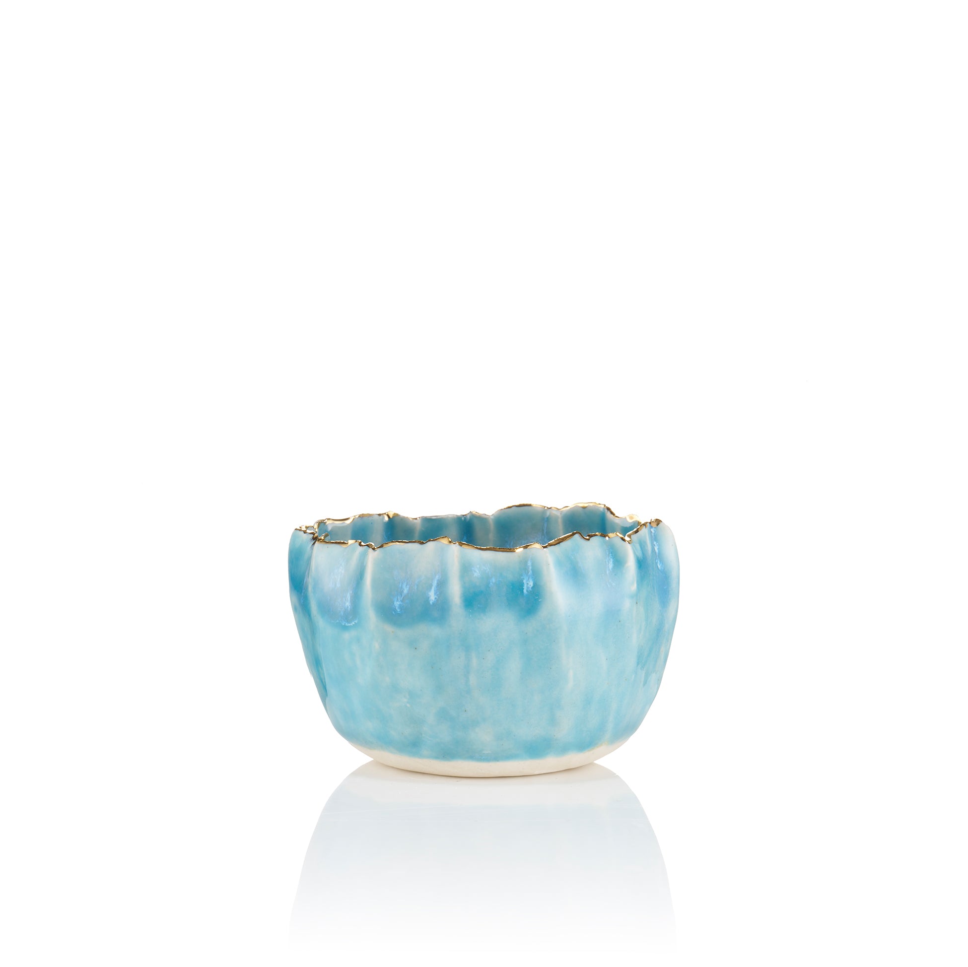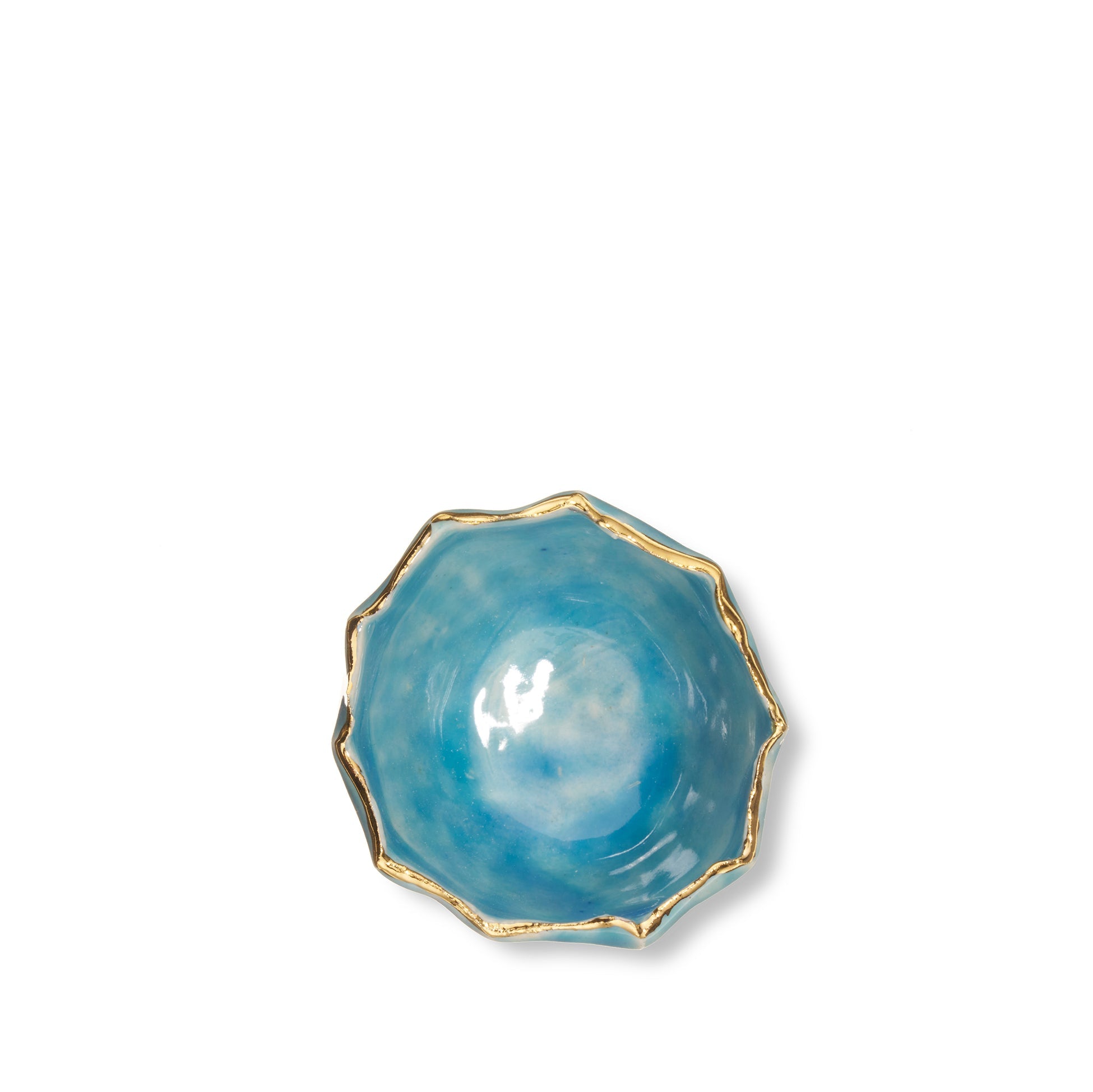 Gold Rim Blue Pinch Pot, 7cm