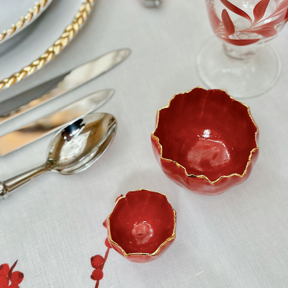 No two bowls are the same, each goes through several rounds of glazing so that every piece has its own distinct shade. Created for Summerill & Bishop in shades to complement our classic colour palette so that you can mix and match effortlessly with our table linens. Finished with a slick of gorgeous gold lustre atop the edge of the bowl.