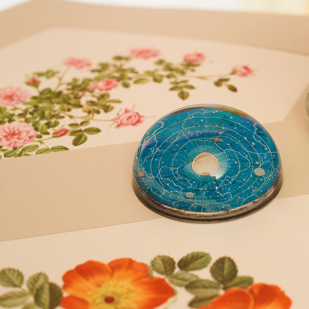 A posy under glass. Weighty, jewel-like, and wonderfully nostalgic for letters, notes, and the home office.