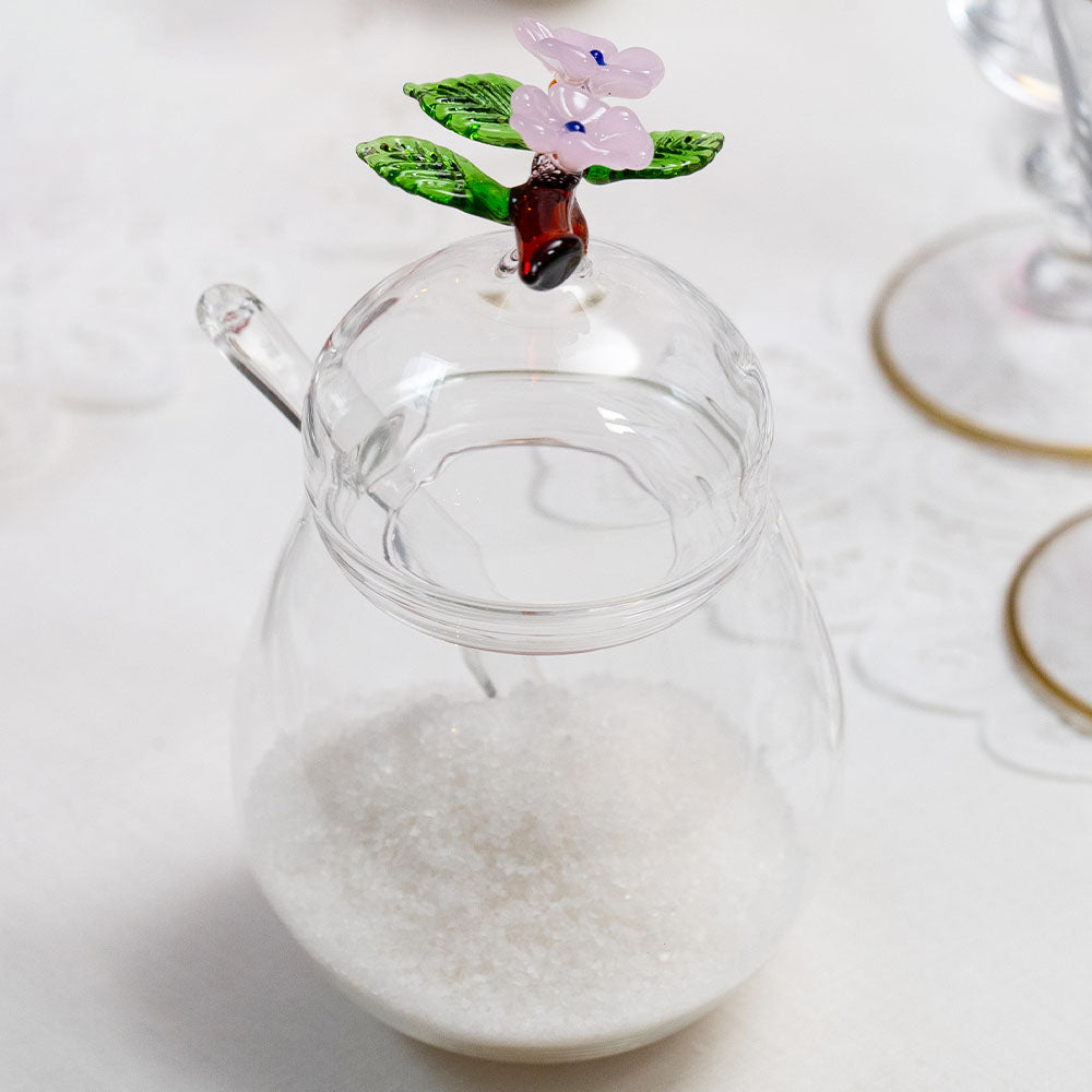 S&B x Casarialto 'Blossom' Handblown Glass Sugar Bowl & Spoon